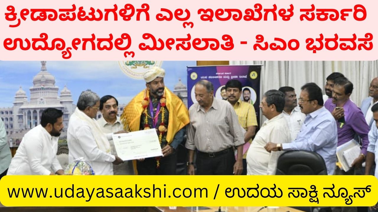 ‘ಕ್ರೀಡಾಪಟುಗಳಿಗೆ ಎಲ್ಲಾ ಇಲಾಖೆಗಳ ಸರ್ಕಾರಿ ಉದ್ಯೋಗದಲ್ಲಿ ಮೀಸಲಾತಿ’ : ಸಿಎಂ ಭರವಸೆ